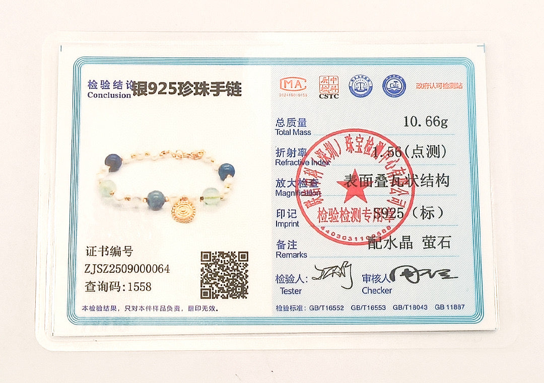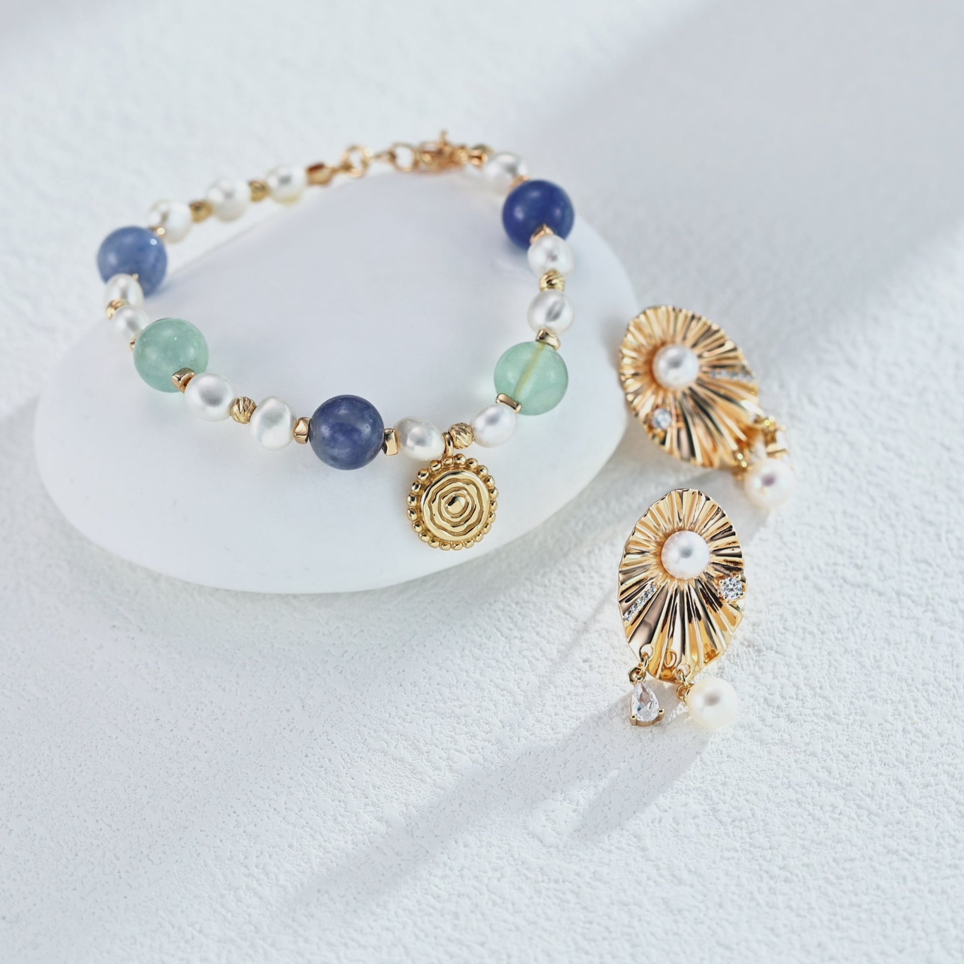 Material: S925 Sterling Silver / Natural Pearl / Natural Fluorite / Blue Aventurine