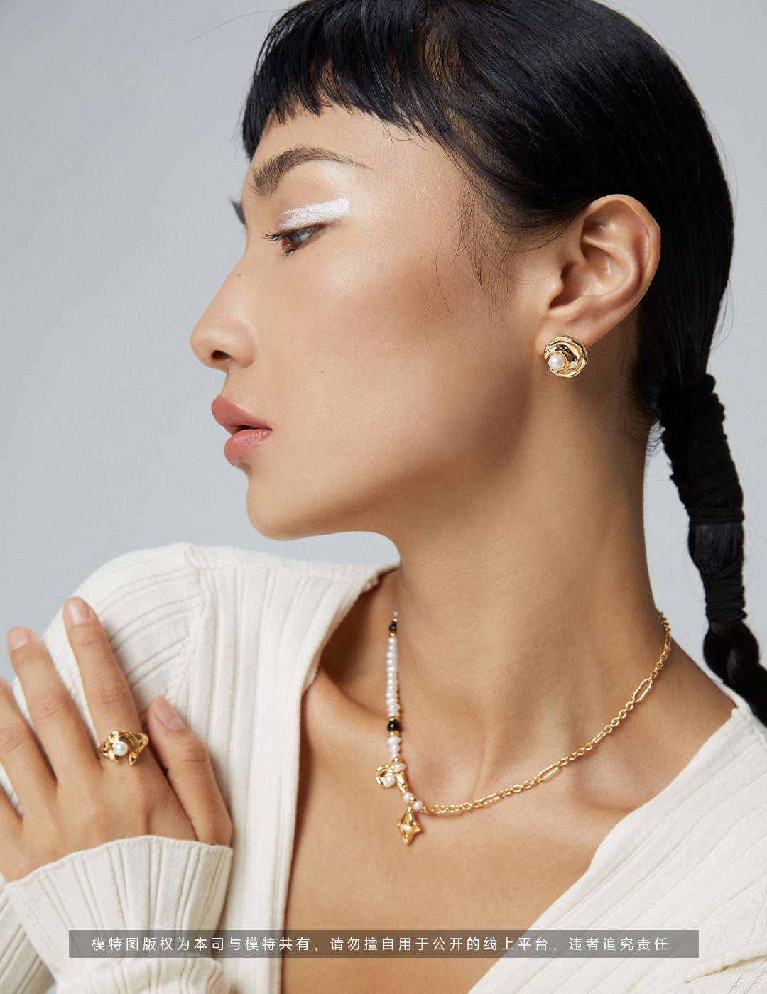 Part of the Star & Moon Design Series, this S925 silver pearl necklace features a unique celestial motif that evokes elegance and mystery. Crafted from high-quality sterling silver with your choice of vintage gold or platinum finish, the design combines irregular textured detailing with natural gemstones for a refined, artistic feel.